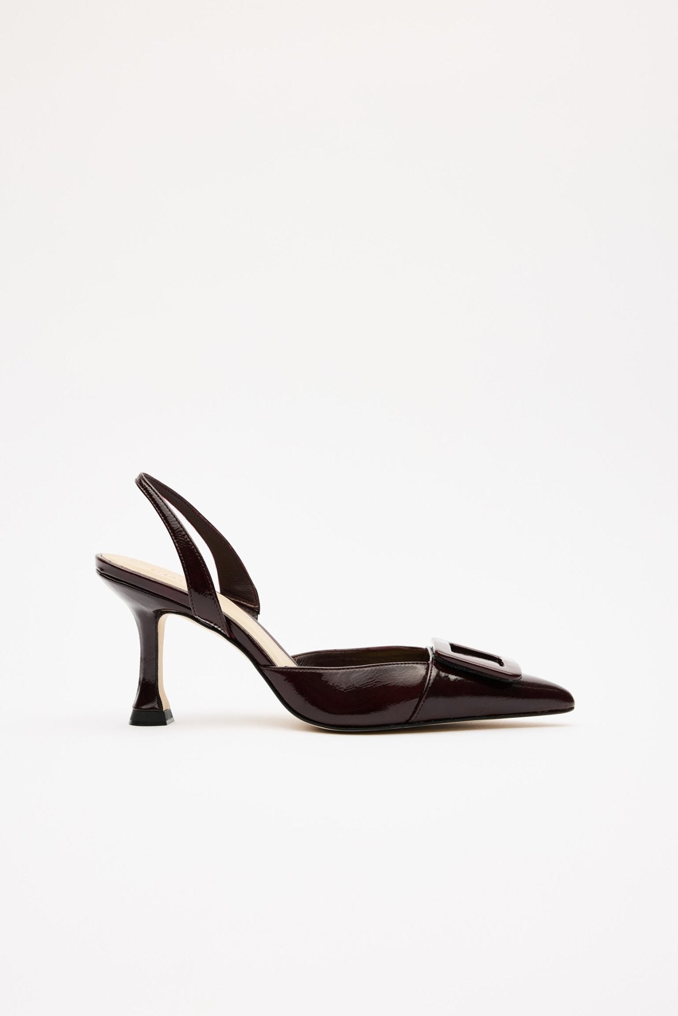 Heel fastening by means of a strap with a small elastic strap on the side for greater comfort.