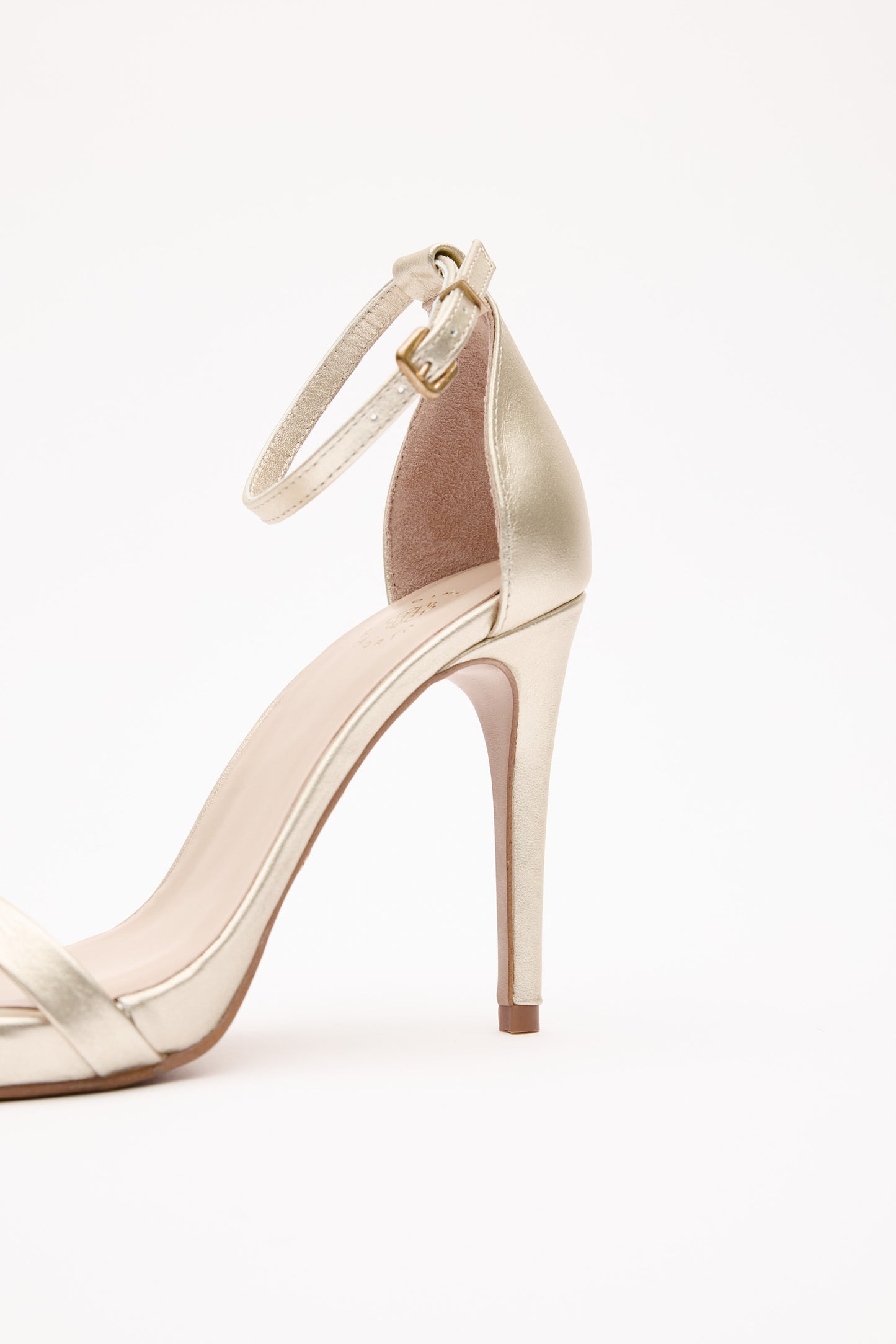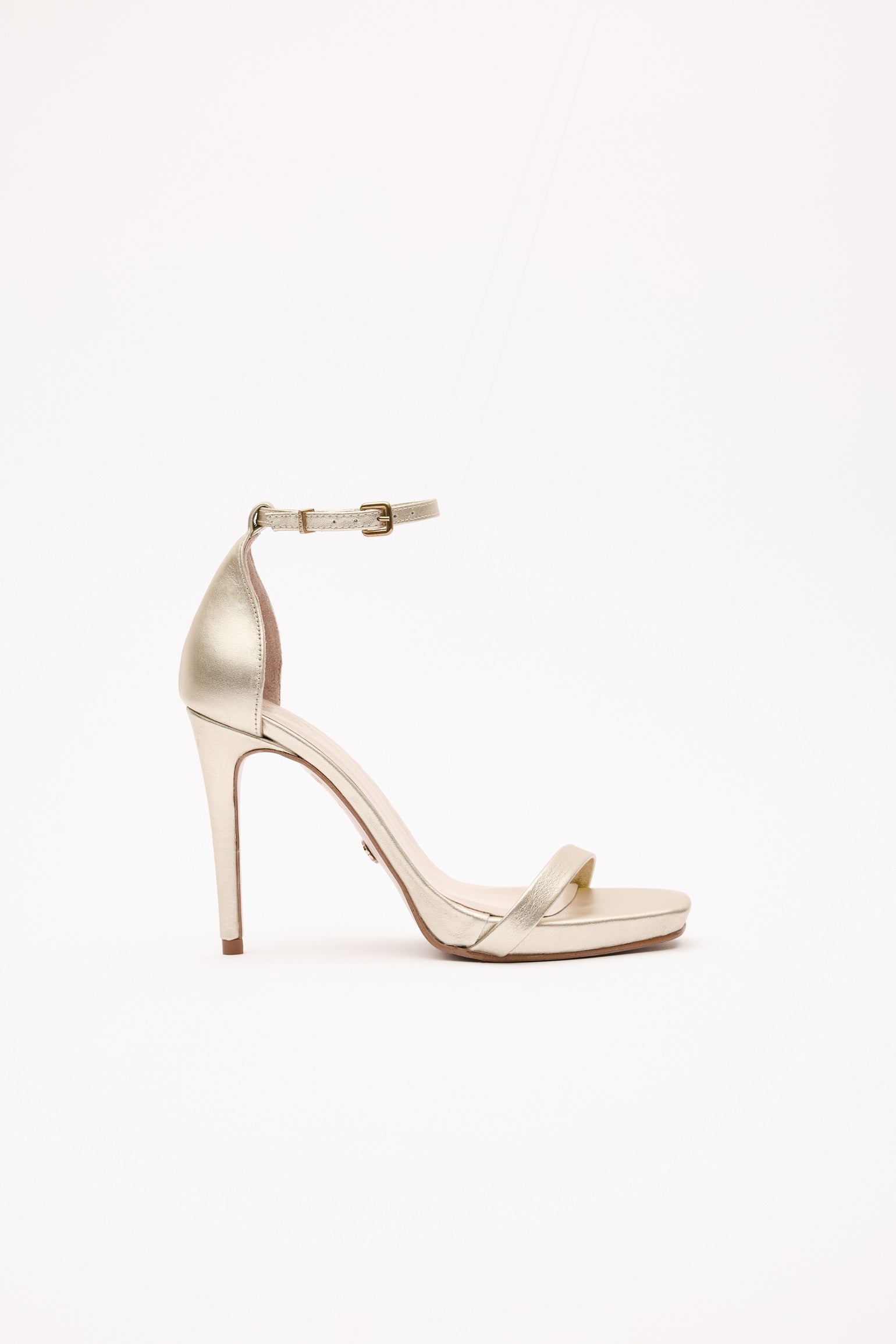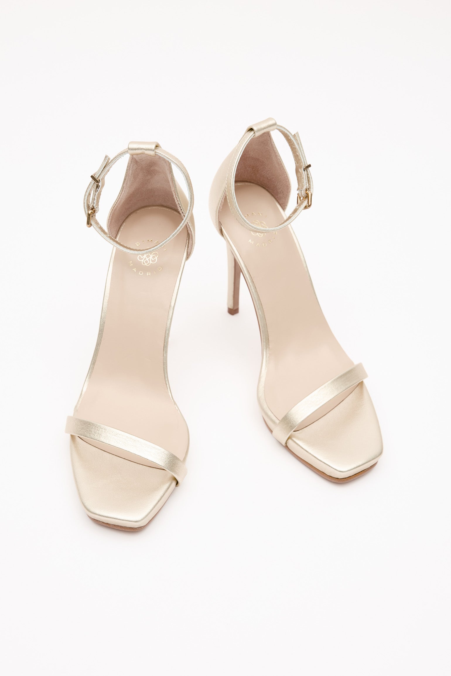 Leather sandals. Square toe open toe. Thin strap on the front. Covered heel. Thin strap fastened at the ankle. Heel height of 10,5cm. Platform 1,5cm.