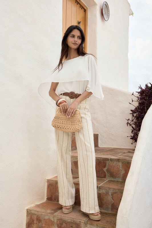 BIMANI's wide-leg pants are ideal for any occasion. Their light drape and fluid design provide movement and style, making them a versatile piece for everyday wear or more special occasions.