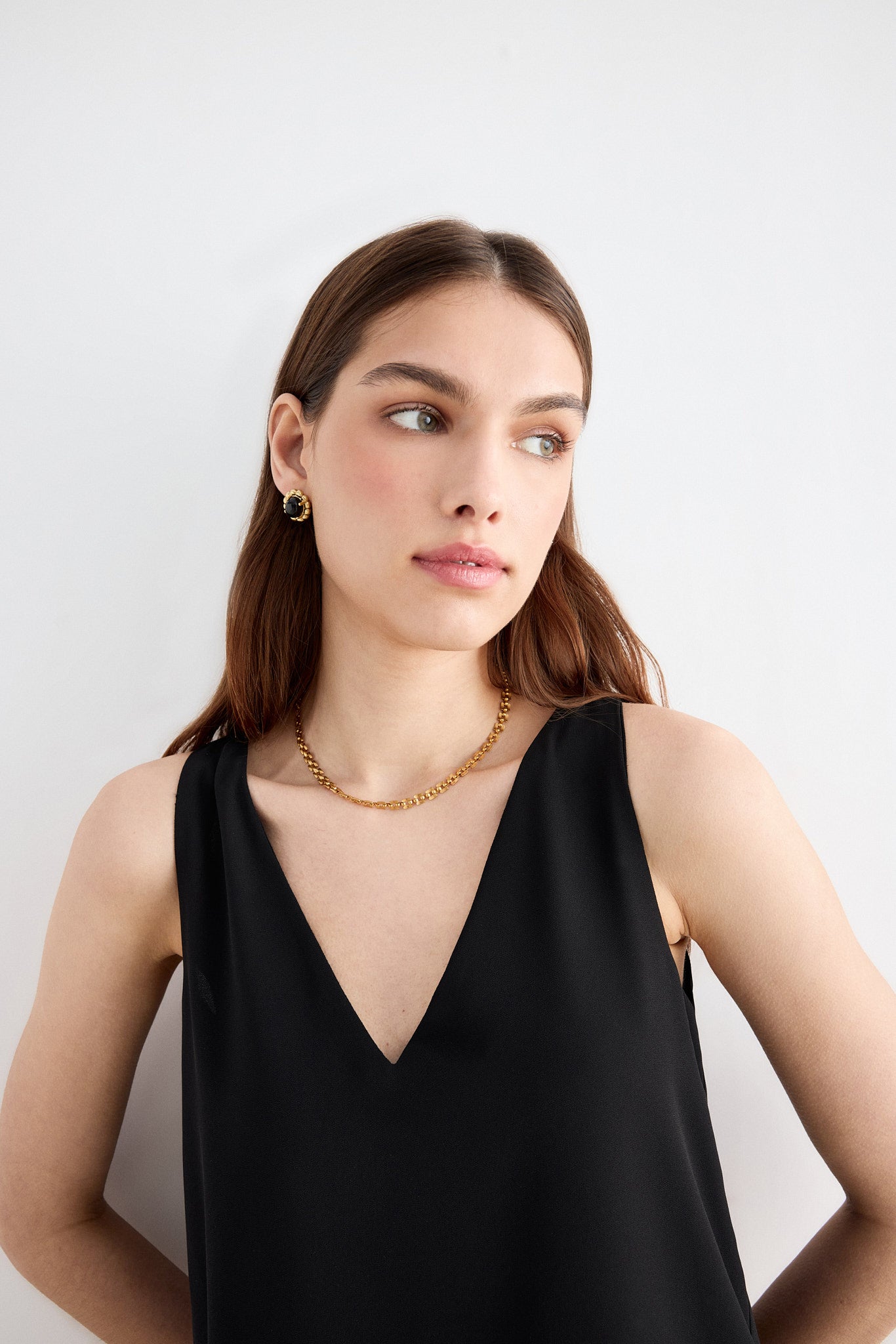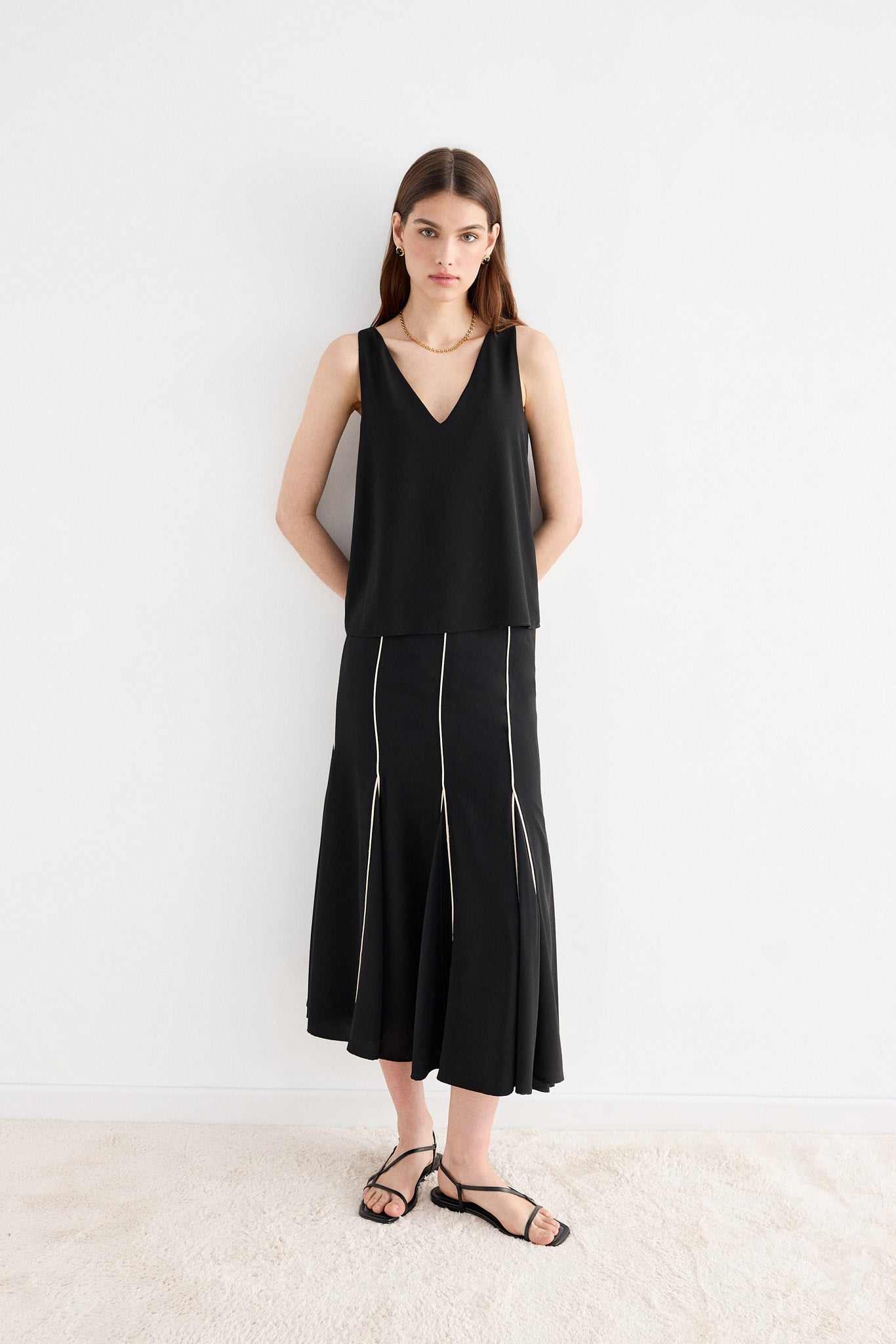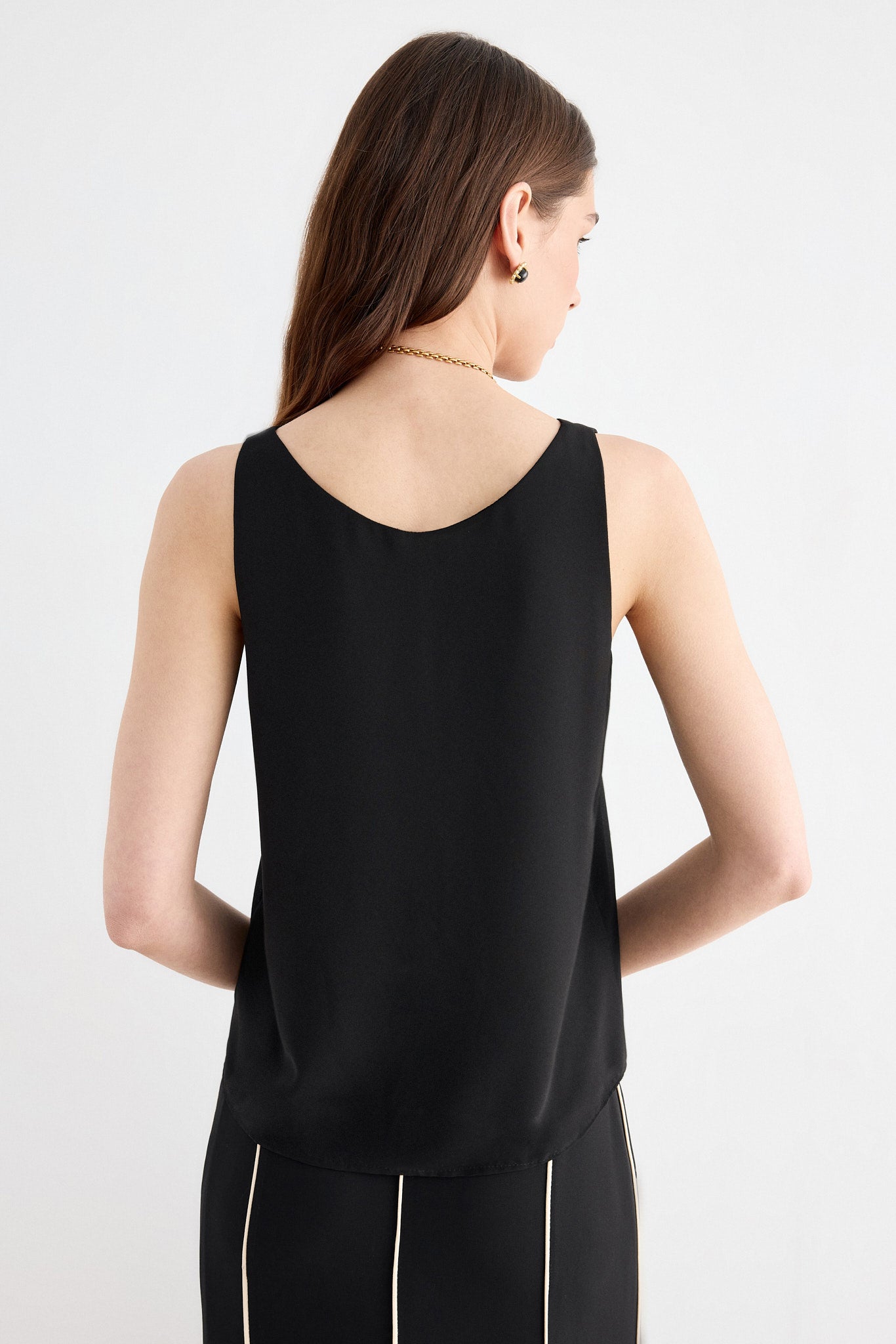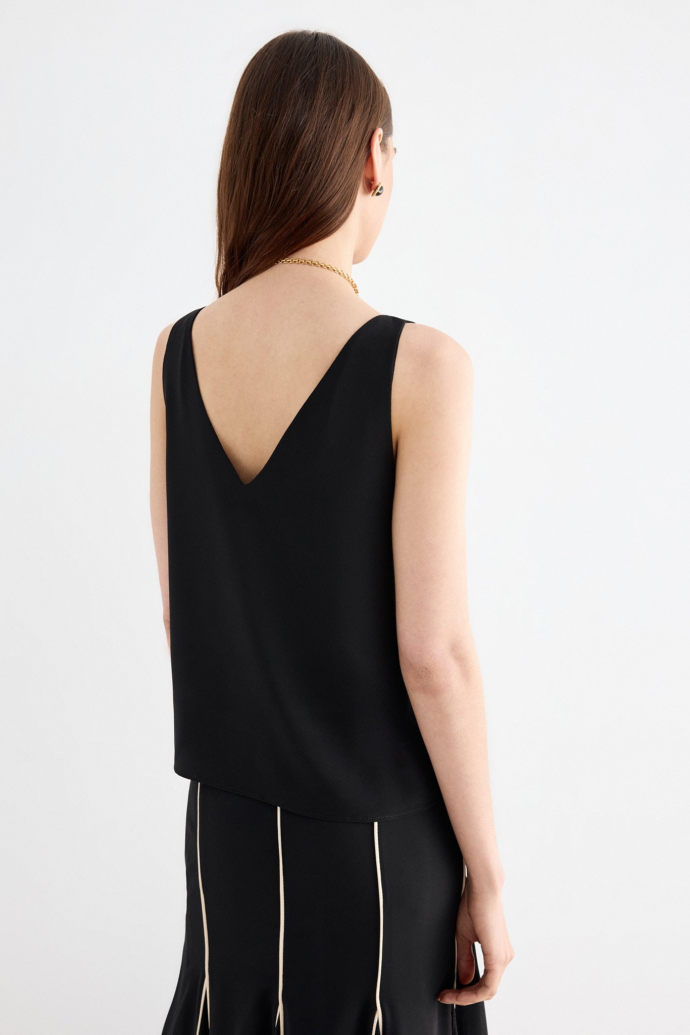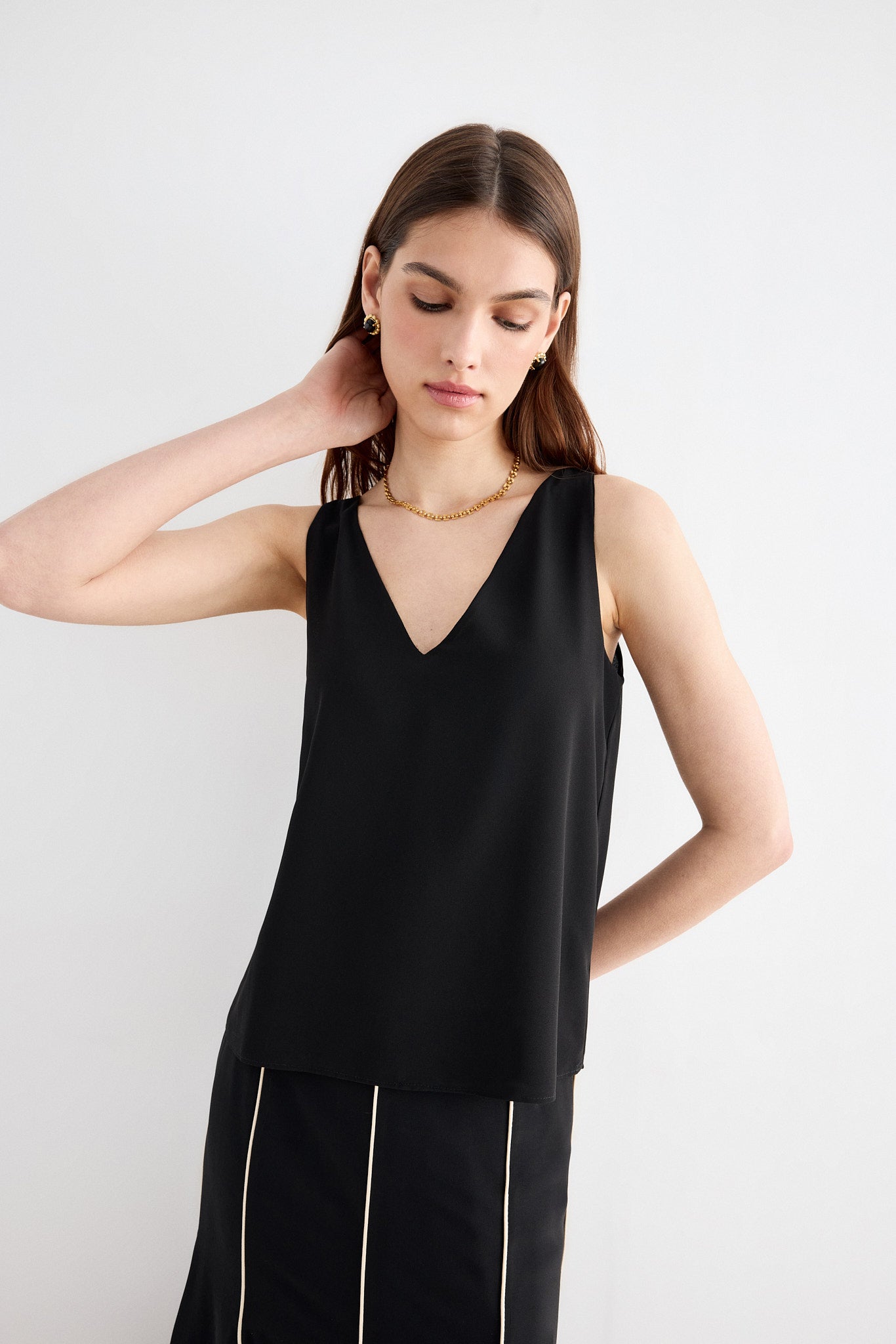 Top de tirantes anchos, corte recto y diseño twist que te permite llevar el escote pico en el delantero o en la espalda.