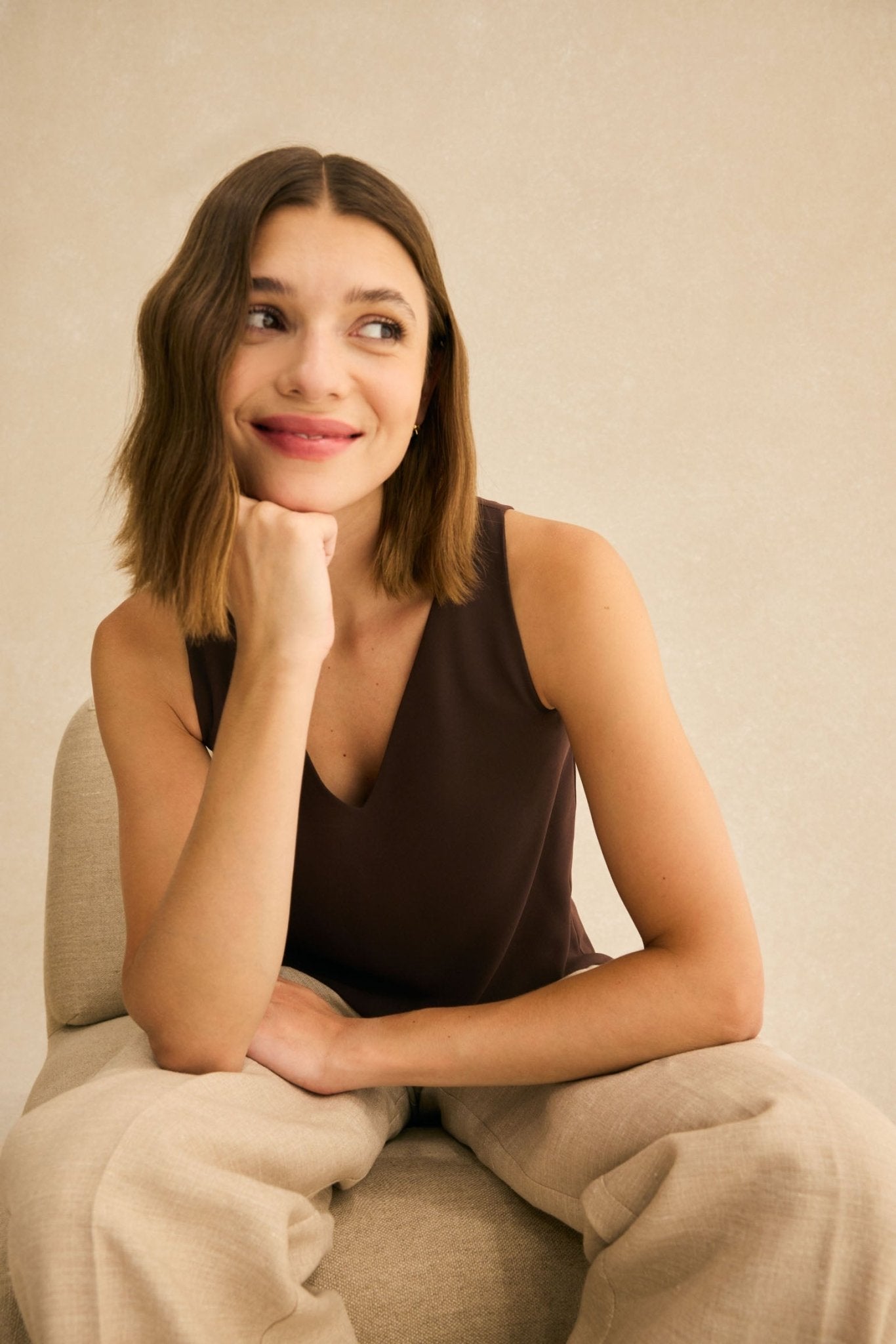 - Diseño twist que te permite llevar el escote pico en el delantero o en la espalda