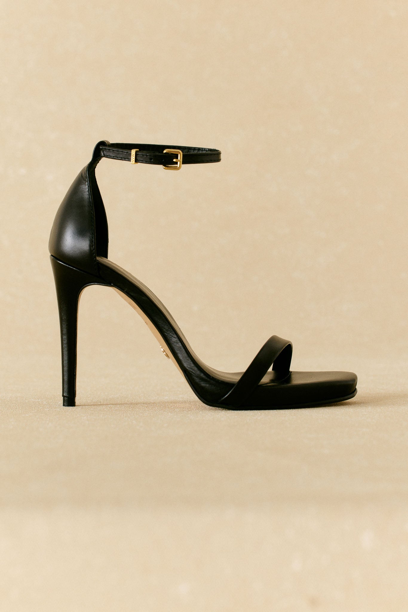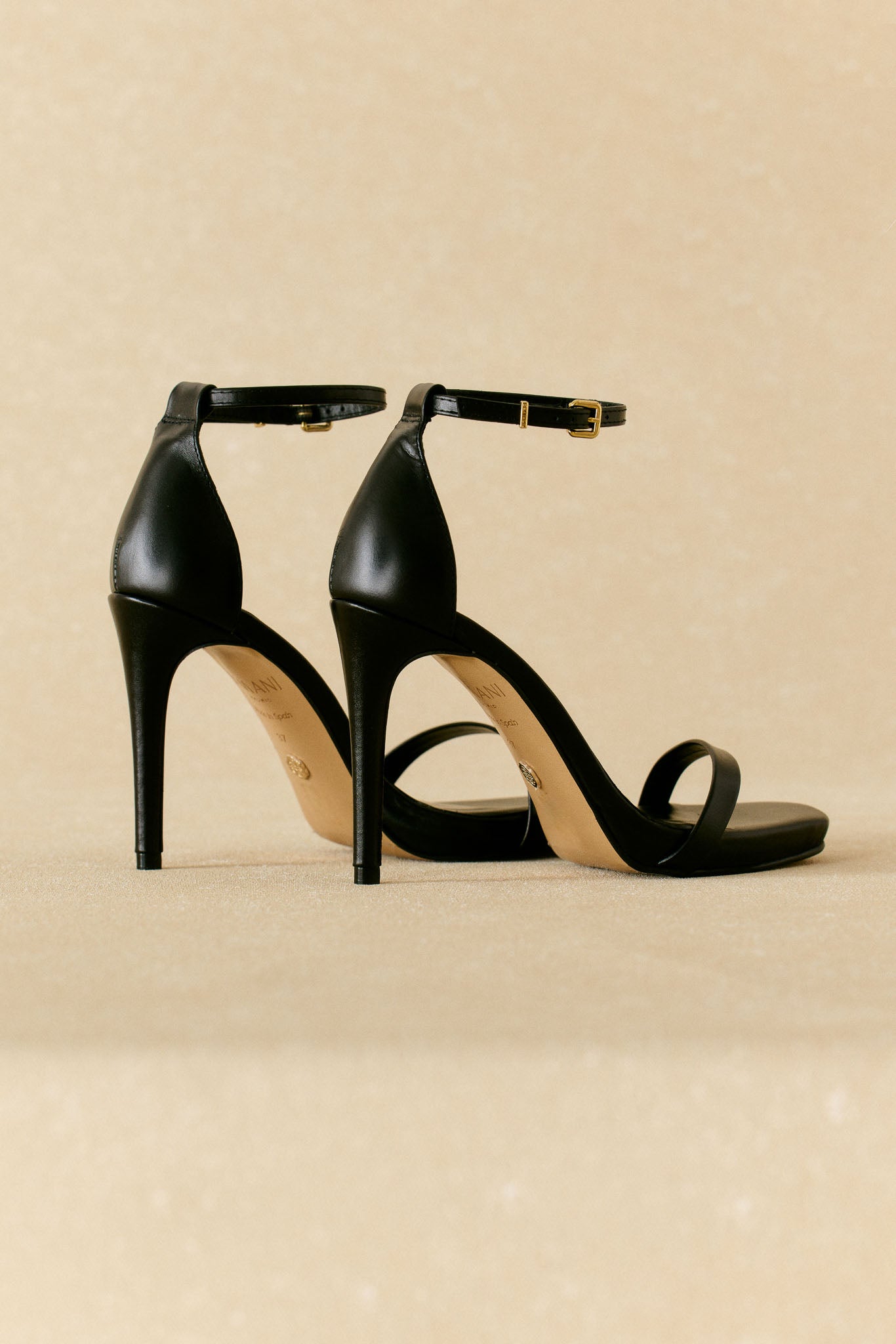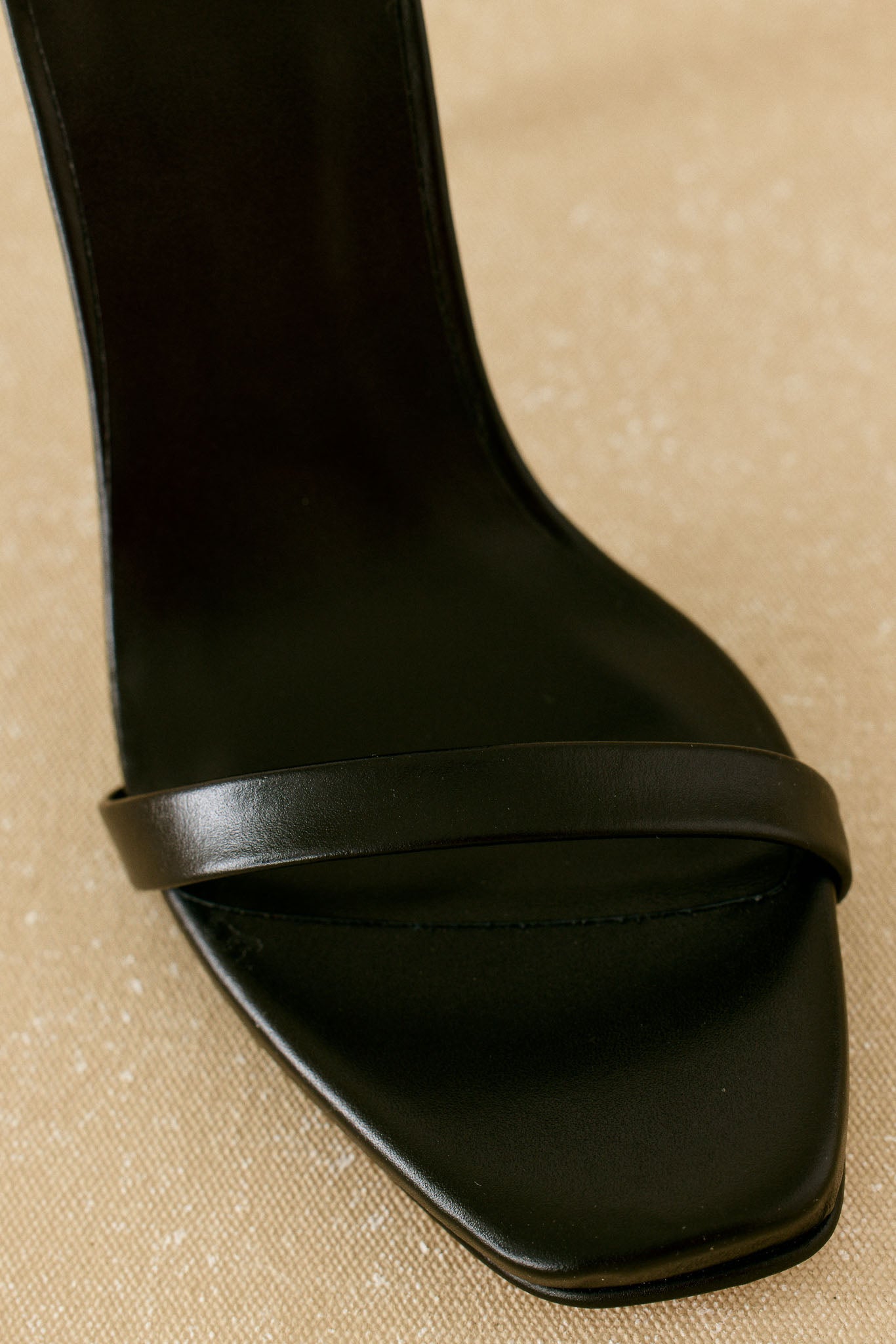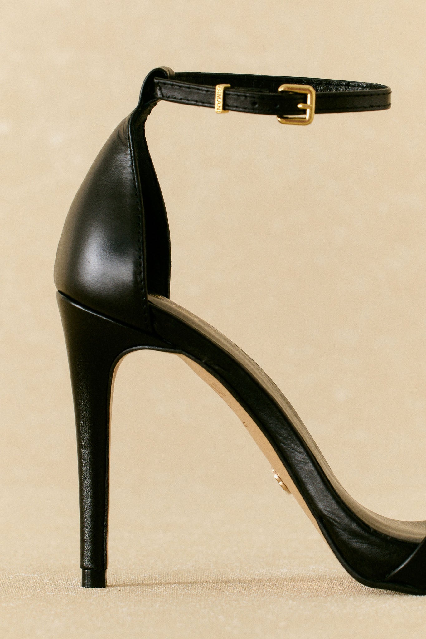 Calcanhar tapado e fecho por tira fina presa ao tornozelo.